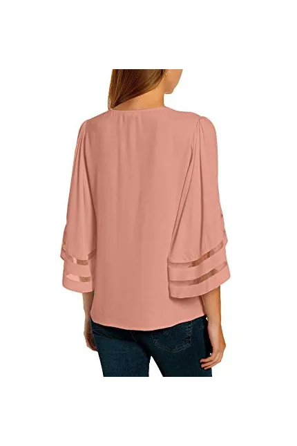 - 3/4 Flare sleeve. Solid color. Summer tops for women.