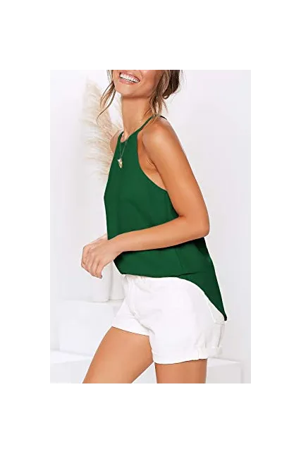 - ✔ UNIQUE AND CLASSY DESIGN: Sleeveless style with feminine halter neckline will show your charming curves, make you chic and attractive. Curved hem adds a touch of trend. Perfect length - Falls at the hips, could be worn tucked in or not! New arrival for SUMMER, a must-have tank top for every fashion woman or girl.