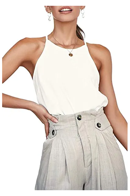 - ✔ UNIQUE AND CLASSY DESIGN: Sleeveless style with feminine halter neckline will show your charming curves, make you chic and attractive. Curved hem adds a touch of trend. Perfect length - Falls at the hips, could be worn tucked in or not! New arrival for SUMMER, a must-have tank top for every fashion woman or girl.
