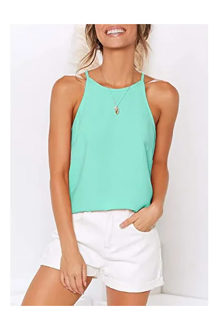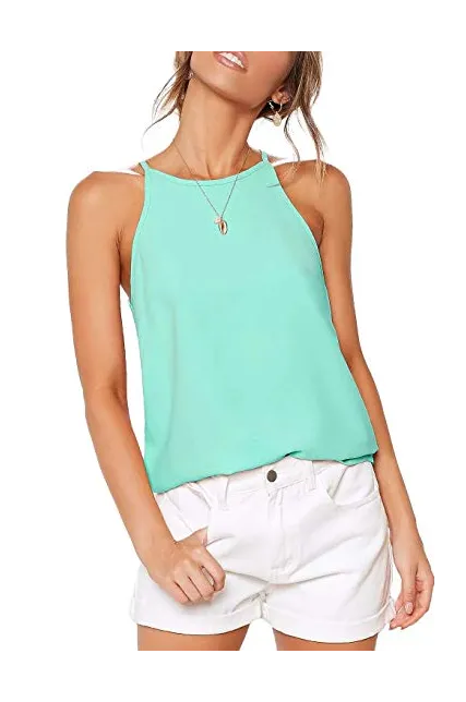 - ✔ UNIQUE AND CLASSY DESIGN: Sleeveless style with feminine halter neckline will show your charming curves, make you chic and attractive. Curved hem adds a touch of trend. Perfect length - Falls at the hips, could be worn tucked in or not! New arrival for SUMMER, a must-have tank top for every fashion woman or girl.