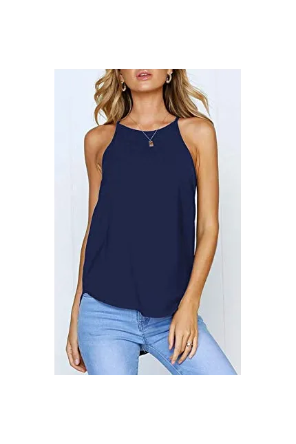 - ✔ UNIQUE AND CLASSY DESIGN: Sleeveless style with feminine halter neckline will show your charming curves, make you chic and attractive. Curved hem adds a touch of trend. Perfect length - Falls at the hips, could be worn tucked in or not! New arrival for SUMMER, a must-have tank top for every fashion woman or girl.