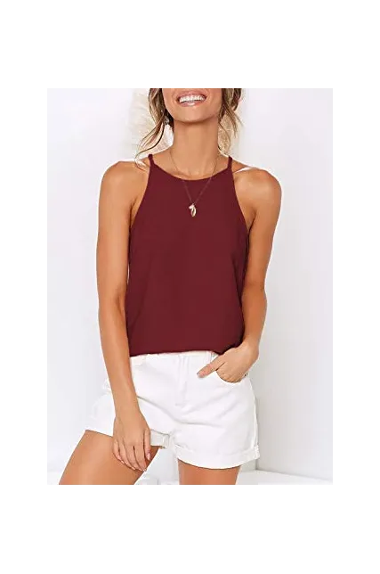 - ✔ UNIQUE AND CLASSY DESIGN: Sleeveless style with feminine halter neckline will show your charming curves, make you chic and attractive. Curved hem adds a touch of trend. Perfect length - Falls at the hips, could be worn tucked in or not! New arrival for SUMMER, a must-have tank top for every fashion woman or girl.