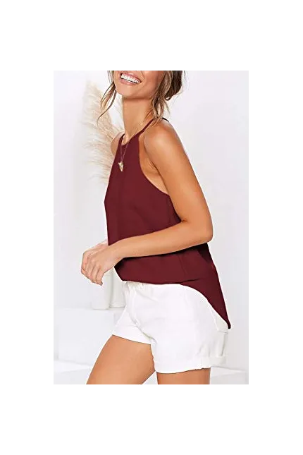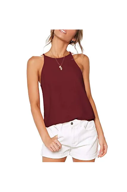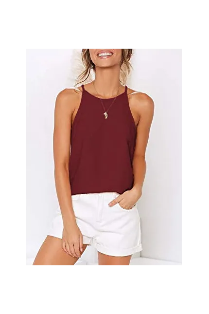 - ✔ UNIQUE AND CLASSY DESIGN: Sleeveless style with feminine halter neckline will show your charming curves, make you chic and attractive. Curved hem adds a touch of trend. Perfect length - Falls at the hips, could be worn tucked in or not! New arrival for SUMMER, a must-have tank top for every fashion woman or girl.
