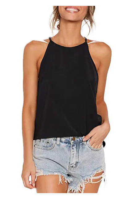 - ✔ UNIQUE AND CLASSY DESIGN: Sleeveless style with feminine halter neckline will show your charming curves, make you chic and attractive. Curved hem adds a touch of trend. Perfect length - Falls at the hips, could be worn tucked in or not! New arrival for SUMMER, a must-have tank top for every fashion woman or girl.