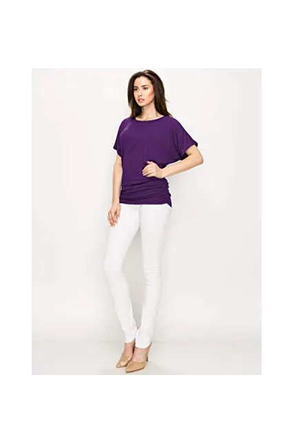 Made By Johnny Women's Solid Sleeveless Boat Neck V Neck Dolman Top Side Shirring Plus Size Loose Fit