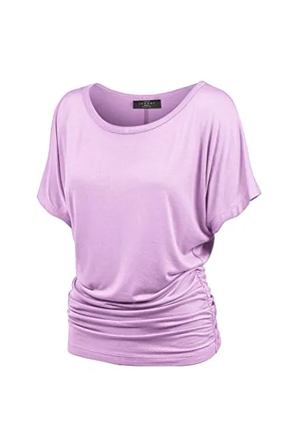 Made By Johnny Women's Solid Sleeveless Boat Neck V Neck Dolman Top Side Shirring Plus Size Loose Fit
