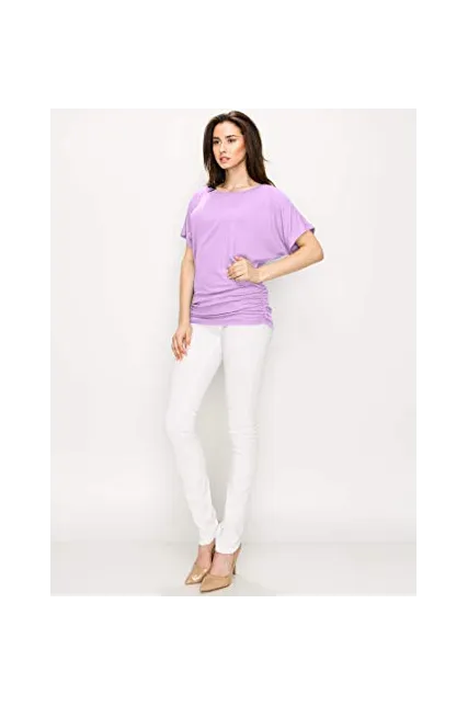 Made By Johnny Women's Solid Sleeveless Boat Neck V Neck Dolman Top Side Shirring Plus Size Loose Fit