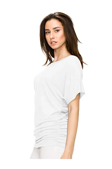 Made By Johnny Women's Solid Sleeveless Boat Neck V Neck Dolman Top Side Shirring Plus Size Loose Fit