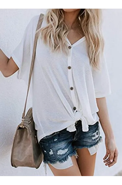 - Matches Good With Shorts or Jeans, Leggings or Sandals! You can have to tie as a knot at the front, it make you looks more Sexy, Stylish, Cute, Great visual effect. This blouse also can be a Cardigan, Lightweight, Loose fit for most body shapes