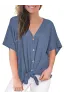 MIHOLL Womens Loose Blouse Short Sleeve V Neck Button Down T Shirts Tie Front Knot Casual Tops