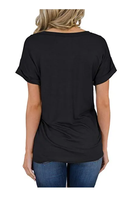 - Sexy V Neck tees, Short sleeve T-shirt, Plain, roll sleeve, Basic tees with front pocket decoration, So cute tops
