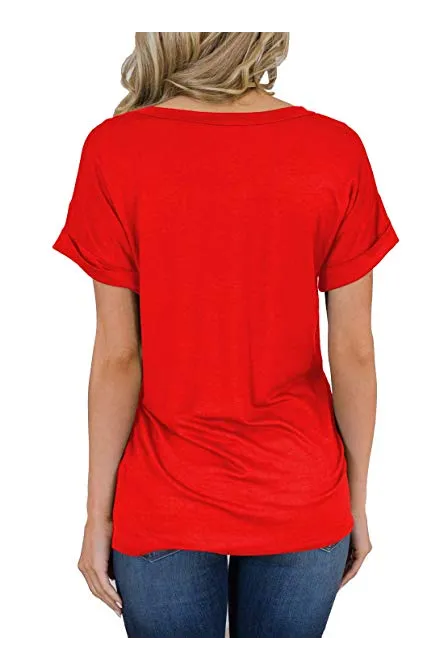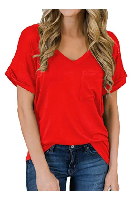 - Sexy V Neck tees, Short sleeve T-shirt, Plain, roll sleeve, Basic tees with front pocket decoration, So cute tops