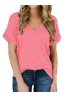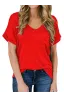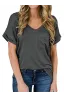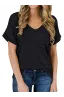 - Sexy V Neck tees, Short sleeve T-shirt, Plain, roll sleeve, Basic tees with front pocket decoration, So cute tops