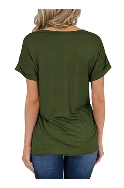 - Sexy V Neck tees, Short sleeve T-shirt, Plain, roll sleeve, Basic tees with front pocket decoration, So cute tops