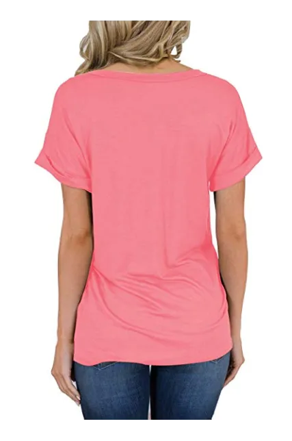 - Sexy V Neck tees, Short sleeve T-shirt, Plain, roll sleeve, Basic tees with front pocket decoration, So cute tops