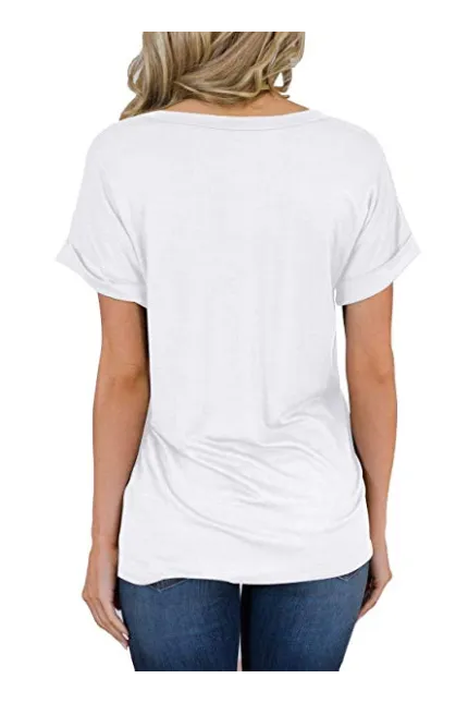 - Sexy V Neck tees, Short sleeve T-shirt, Plain, roll sleeve, Basic tees with front pocket decoration, So cute tops