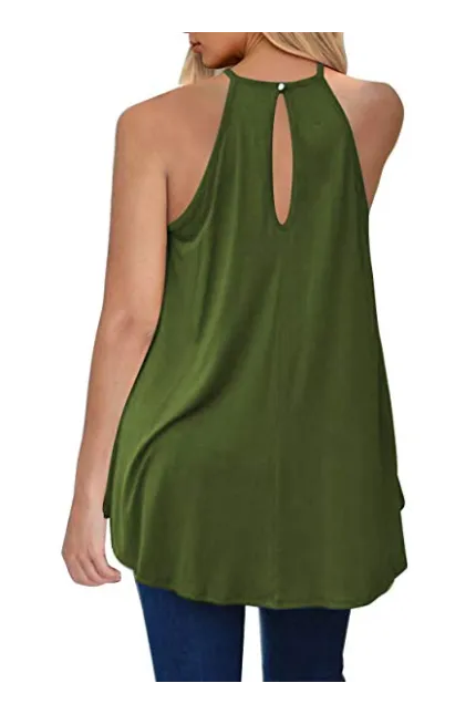 - Sleeveless, Sexy Lace Hollow out design, Back Keyhole with Button closure, Flare Hem Tunic, Solid color, Stretchy and Lightweight, Sexy Neckline, Loose Shirts