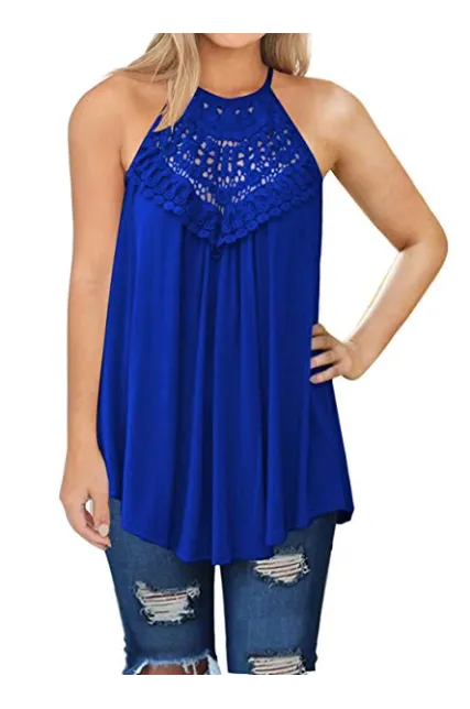 - Features: Sleeveless, Sexy Lace Hollow out design, Flare Hem Tunic, Solid color, Crew Neck, Stretchy and Lightweight, Sexy Neckline