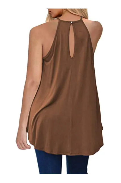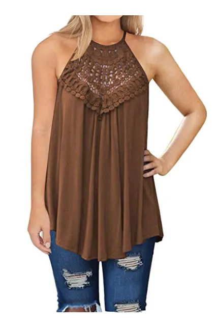 - Sleeveless, Sexy Lace Hollow out design, Back Keyhole with Button closure, Flare Hem Tunic, Solid color, Stretchy and Lightweight, Sexy Neckline, Loose Shirts