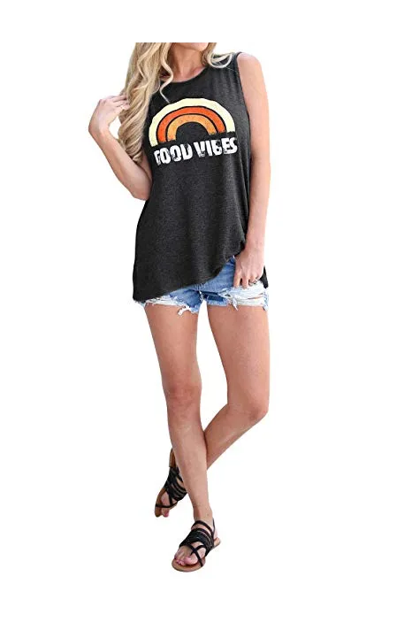 Nlife Women Good Vibes Tank Blouse Round Neck Sleeveless and Long Sleeve Rainbow Casual Ladies Waistcoat Tank Tops for Women