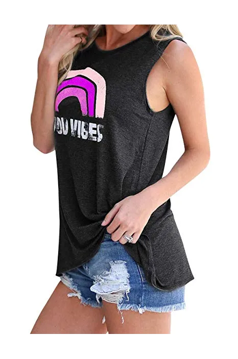 Nlife Women Good Vibes Tank Blouse Round Neck Sleeveless and Long Sleeve Rainbow Casual Ladies Waistcoat Tank Tops for Women