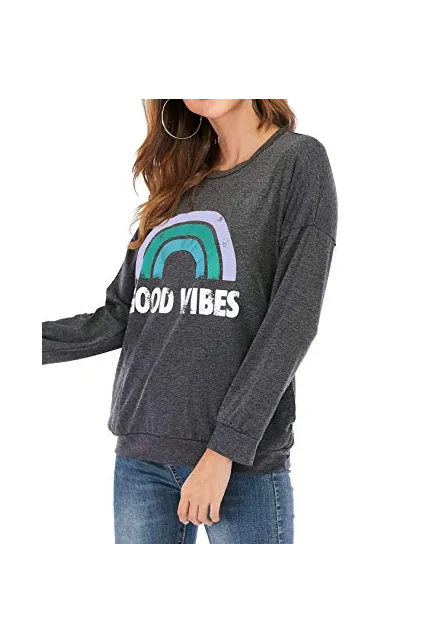 Nlife Women Good Vibes Tank Blouse Round Neck Sleeveless and Long Sleeve Rainbow Casual Ladies Waistcoat Tank Tops for Women