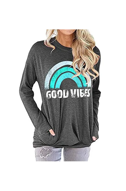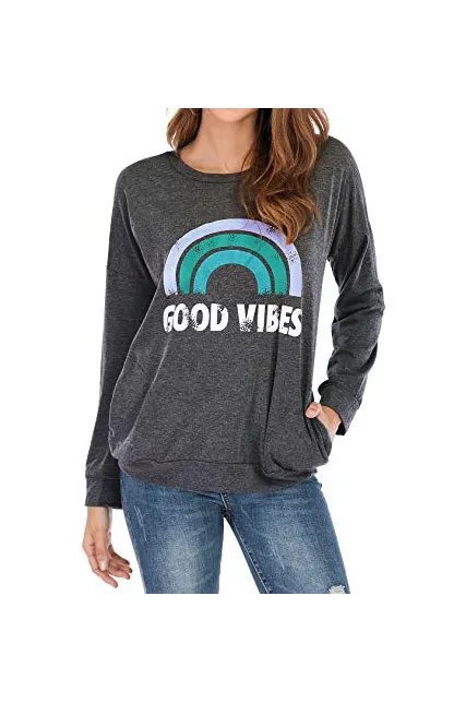 Nlife Women Good Vibes Tank Blouse Round Neck Sleeveless and Long Sleeve Rainbow Casual Ladies Waistcoat Tank Tops for Women