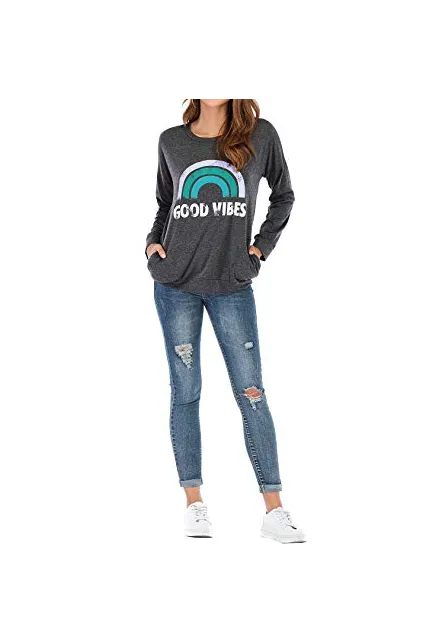 Nlife Women Good Vibes Tank Blouse Round Neck Sleeveless and Long Sleeve Rainbow Casual Ladies Waistcoat Tank Tops for Women
