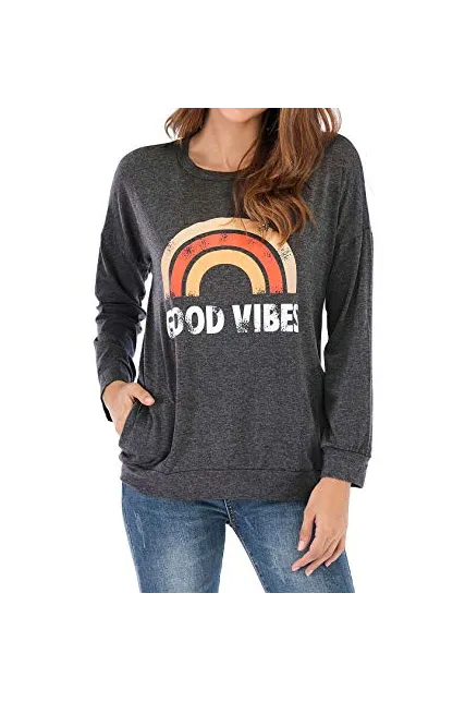 Nlife Women Good Vibes Tank Blouse Round Neck Sleeveless and Long Sleeve Rainbow Casual Ladies Waistcoat Tank Tops for Women