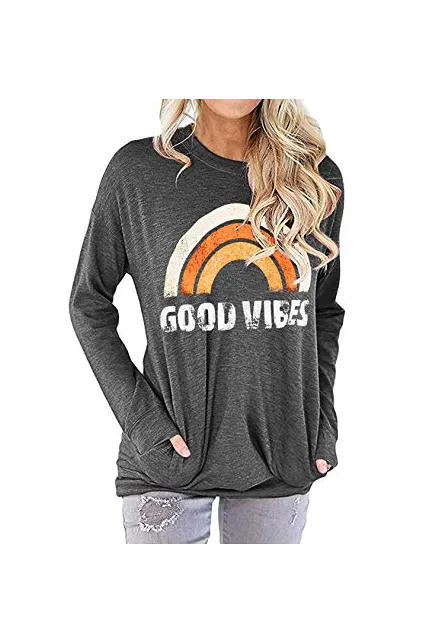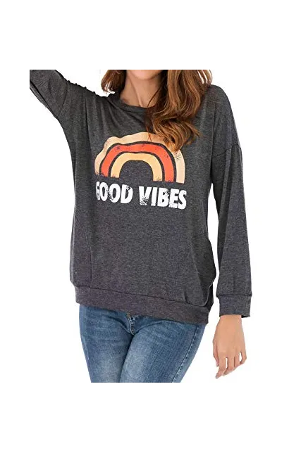 Nlife Women Good Vibes Tank Blouse Round Neck Sleeveless and Long Sleeve Rainbow Casual Ladies Waistcoat Tank Tops for Women