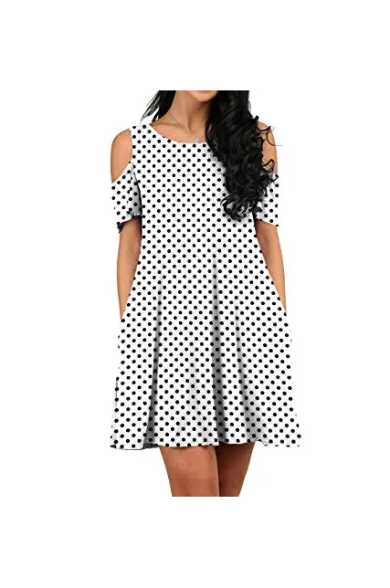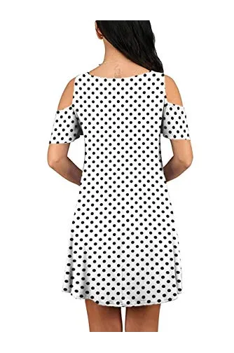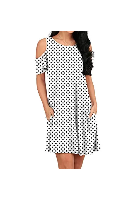 - Feature: Round neck, Short Sleeve, Swing hem, tank top dress,Loose fit, tunic top dress, long Tshirt, swing dress, casual wear,Round Neck Cold Shoulder Ruffle Sleeve A-Line Dress