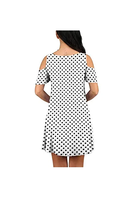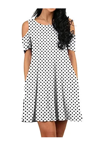 - Feature: Round neck, Short Sleeve, Swing hem, tank top dress,Loose fit, tunic top dress, long Tshirt, swing dress, casual wear,Round Neck Cold Shoulder Ruffle Sleeve A-Line Dress