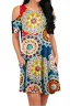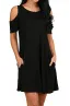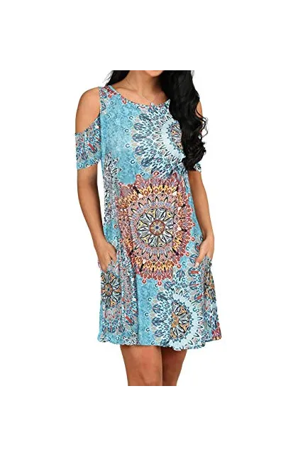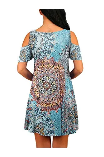 - Feature: Round neck, Short Sleeve, Swing hem, tank top dress,Loose fit, tunic top dress, long Tshirt, swing dress, casual wear,Round Neck Cold Shoulder Ruffle Sleeve A-Line Dress