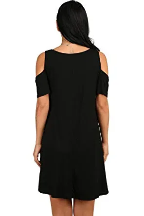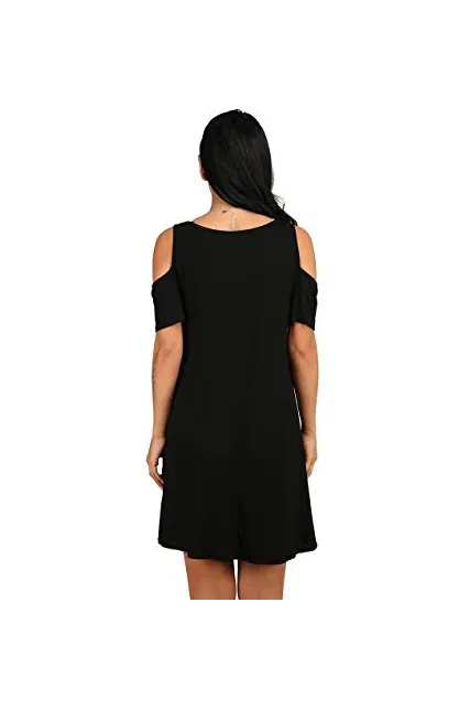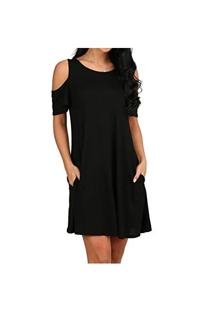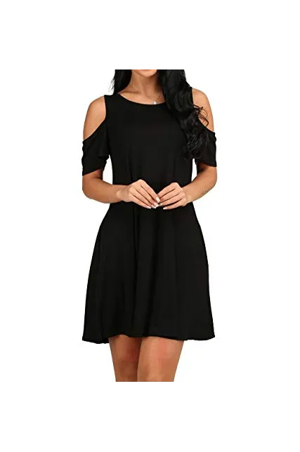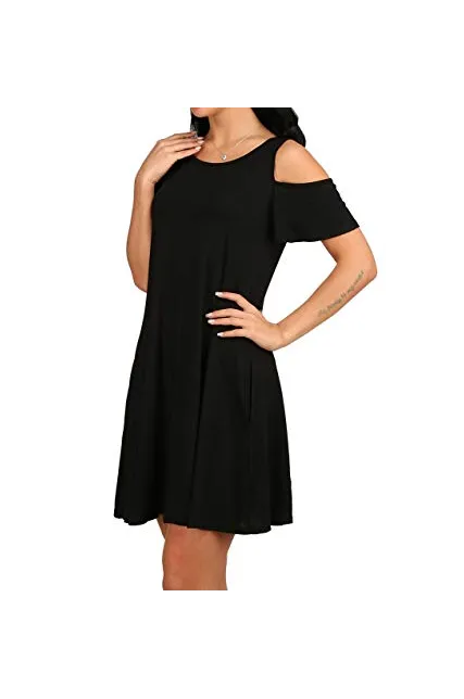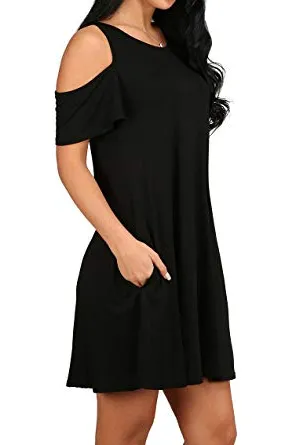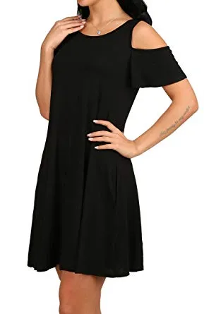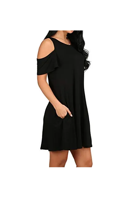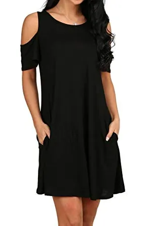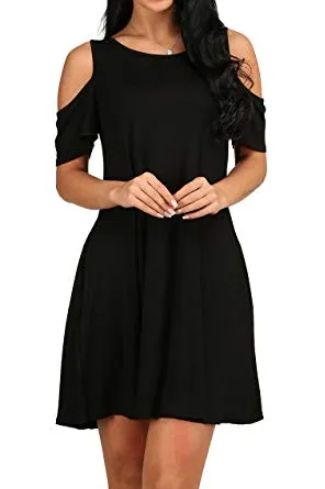 - Feature: Round neck, Short Sleeve, Swing hem, tank top dress,Loose fit, tunic top dress, long Tshirt, swing dress, casual wear,Round Neck Cold Shoulder Ruffle Sleeve A-Line Dress