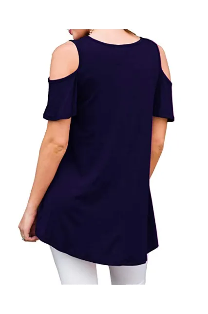 PrinStory Women's Short Sleeve Casual Cold Shoulder Tunic Tops Loose Blouse Shirts