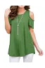 PrinStory Women's Short Sleeve Casual Cold Shoulder Tunic Tops Loose Blouse Shirts