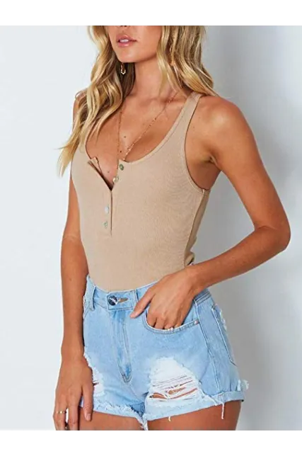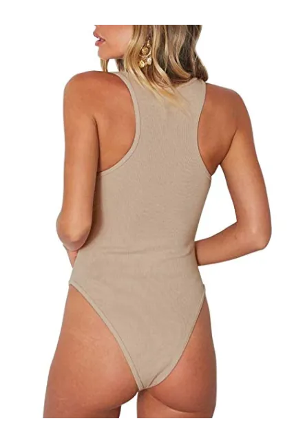 - This bodysuit feature with button down , scoop neck , sleeveless , single breasted ,plain and raceback .