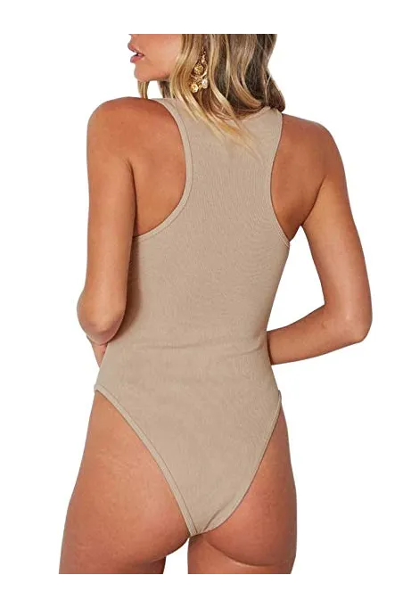 - This bodysuit feature with button down , scoop neck , sleeveless , single breasted ,plain and raceback .