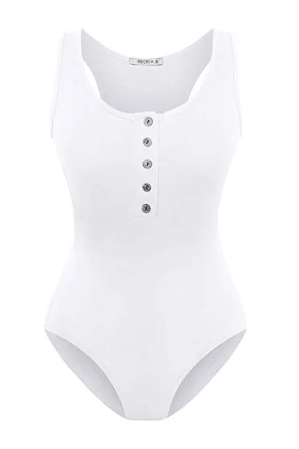 - This bodysuit feature with button down , scoop neck , sleeveless , single breasted ,plain and raceback .