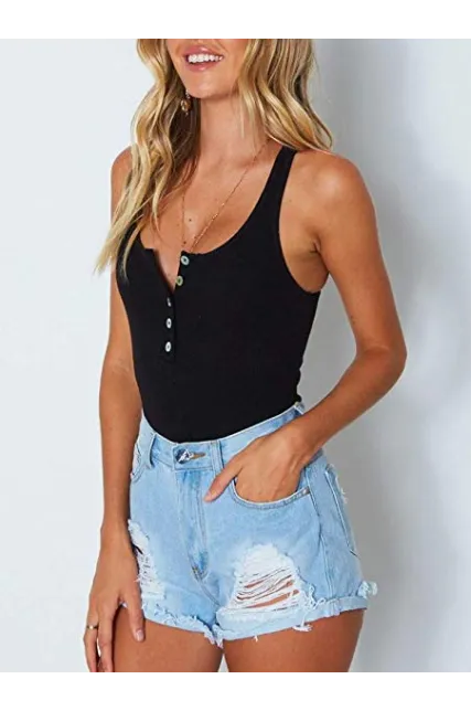 - This bodysuit feature with button down , scoop neck , sleeveless , single breasted ,plain and raceback .
