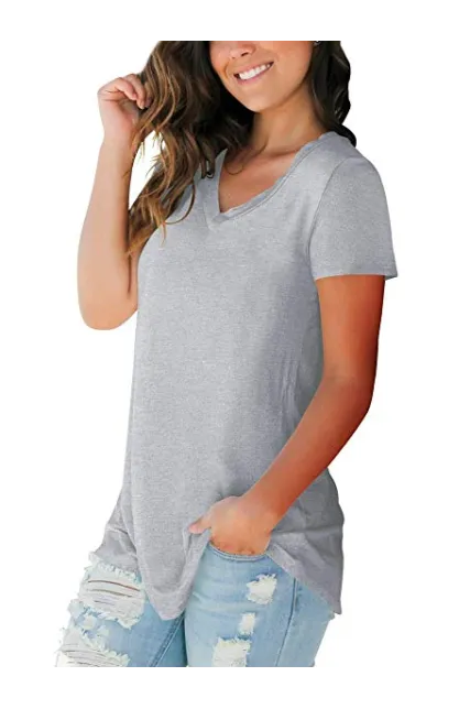 - Unique Design - Casual V neck t-shirt,gorgeous solid and ombre color,trendy and elegant.Pefect wear with jeans or leggings in spring,summer,fall or winter.
