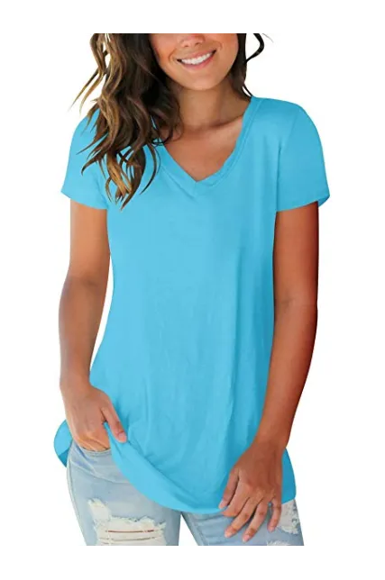 - Unique Design - Casual V neck t-shirt,gorgeous solid and ombre color,trendy and elegant.Pefect wear with jeans or leggings in spring,summer,fall or winter.