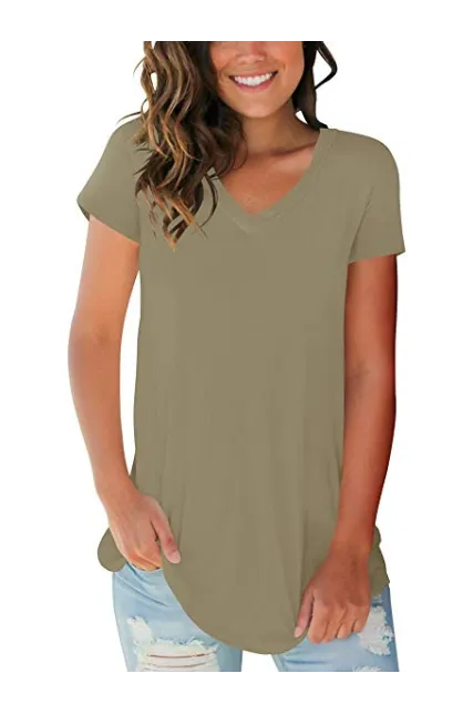 - Unique Design - Casual V neck t-shirt,gorgeous solid and ombre color,trendy and elegant.Pefect wear with jeans or leggings in spring,summer,fall or winter.