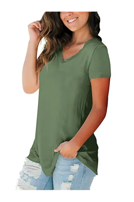 - Unique Design - Casual V neck t-shirt,gorgeous solid and ombre color,trendy and elegant.Pefect wear with jeans or leggings in spring,summer,fall or winter.