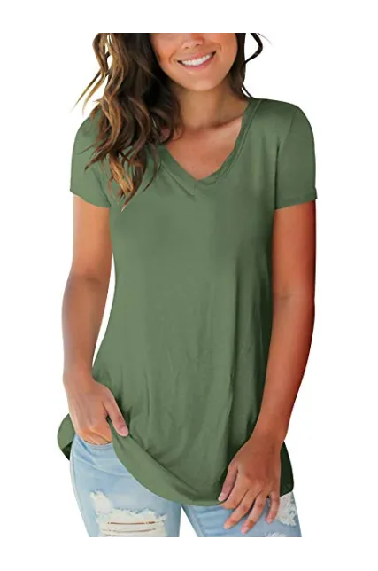 - Unique Design - Casual V neck t-shirt,gorgeous solid and ombre color,trendy and elegant.Pefect wear with jeans or leggings in spring,summer,fall or winter.