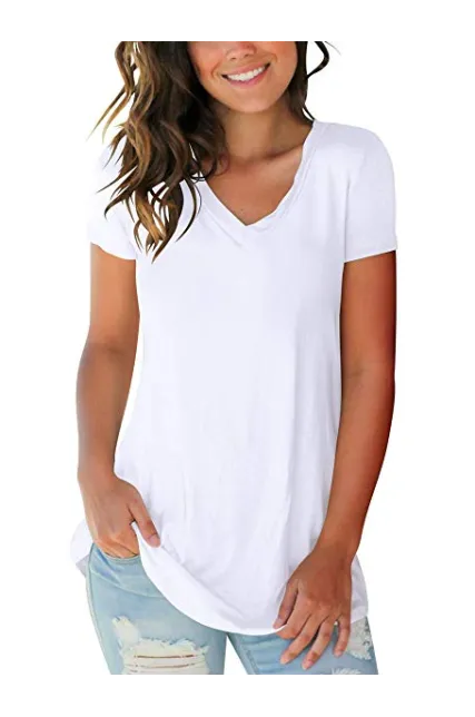 - Unique Design - Casual V neck t-shirt,gorgeous solid and ombre color,trendy and elegant.Pefect wear with jeans or leggings in spring,summer,fall or winter.