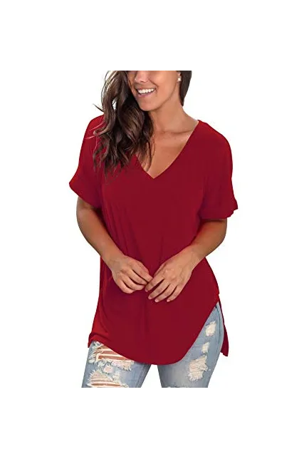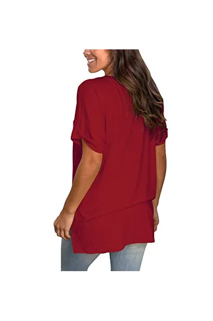 - Unique Design - Casual V neck t-shirt,rolled sleeve,high low hem,side split,solid color and print,trendy and elegant.