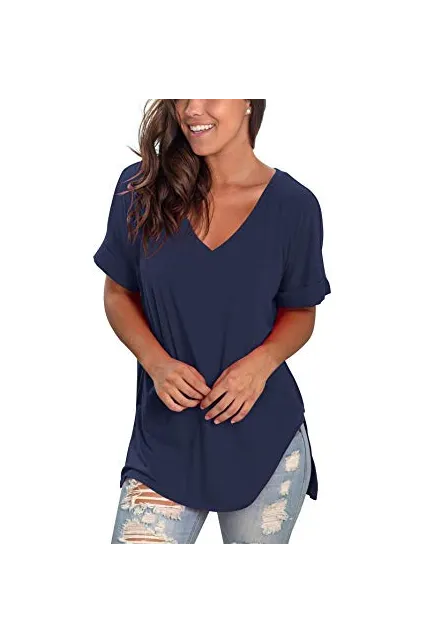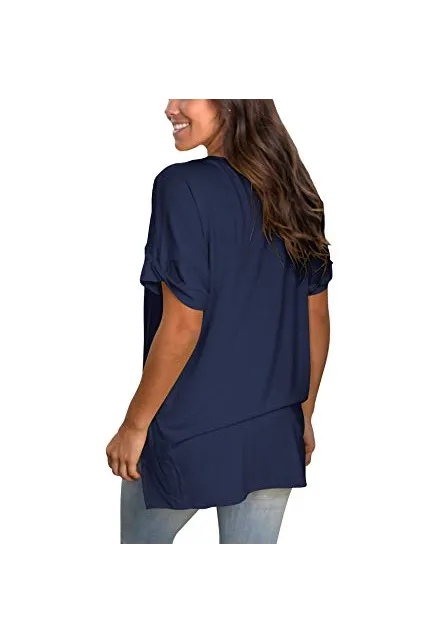 - Unique Design - Casual V neck t-shirt,rolled sleeve,high low hem,side split,solid color and print,trendy and elegant.