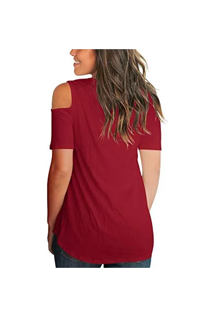 - This unique casual loose t-shirt, cold shoulder T shirts, trendy and elegant item which is suitable for a casual everyday look and any occasions especially for office, parties, clubbing and dating.