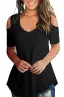 SLIMMING GRIL Women's Casual T Shirt V Neck Cold Shoulder Tops Short Sleeve Tshirt